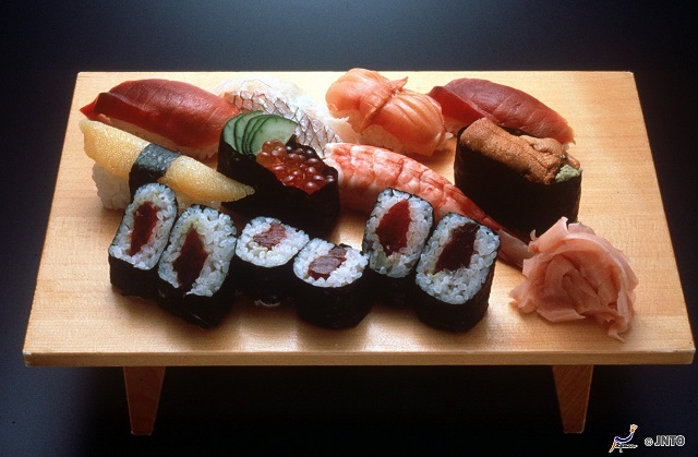Edomae-sushiTokyo's local cuisine using fresh seafood products from Tokyo Bay. Edomae means "in front of (mae) Tokyo Bay (Edo is the old name of Tokyo). It was the first food of the 19th century. This sushi is now familiar to people all around the world. |